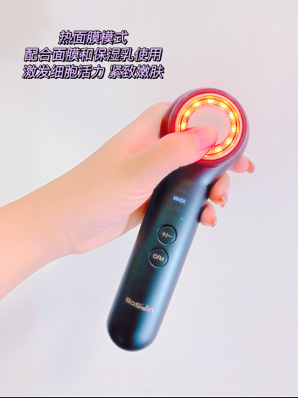 2.热疗保湿-导入模式:它使用穿透力超强超声雾化波,深入皮下 4~6mm ,还有波长470nm的蓝光帮助抑菌、消炎、增强新胶原质弹性蛋白和胶原蛋白的再生,于是爽肤水、精华液等护肤品能够迅速扩散到我们的肌肤深层,皮肤喝饱水了,自然也就白皙透亮了,并且摸起来弹力十足,连一些小皱纹都通通遁形了。
