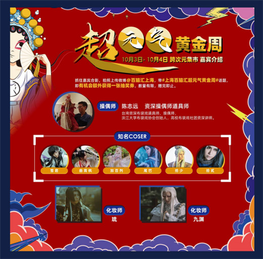 黄金周还可以怎么玩?国潮正当时!百脑汇于10月3日至10月4日,号召志同道合的粉丝来一场线下跨次元聚会狂欢。两天聚会令人兴奋的亮点之一,要属布袋戏操偶表演。在众多中国非物质文化保护遗产面临传承问题时,布袋戏却能长盛不衰,拥有越来越多的年轻戏迷,届时百脑汇将邀请超人气COSER聚集,结合专业操偶师陈志远先生现场操偶教学,为我们揭示布袋戏的秘密,近距离感受大型人偶魅力。