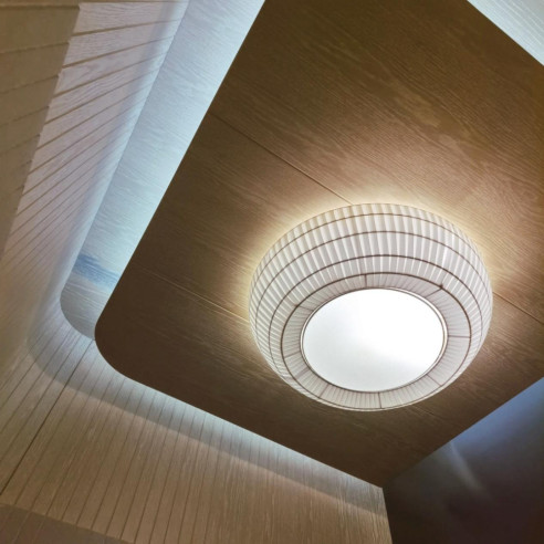 比如项目用了大量的木饰面的元素,从墙面到吊顶到收纳,大量的木饰面