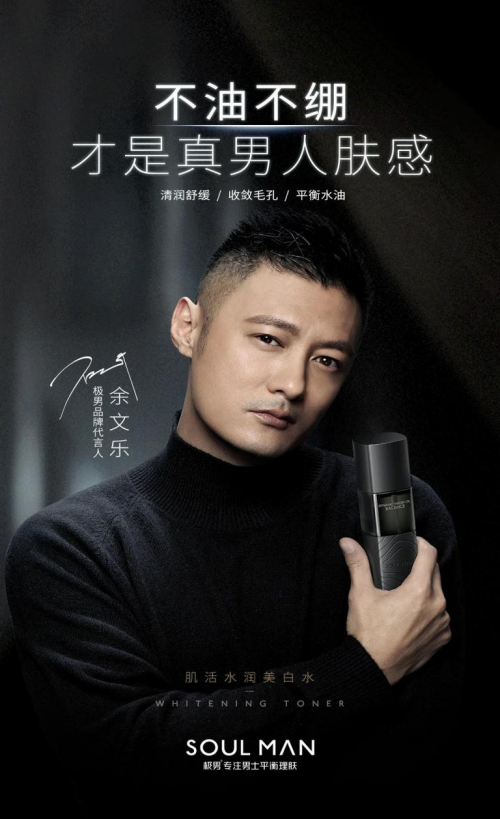 2020年1月1日,SOULMAN极男官宣余文乐担任品牌代言人,同时,正式公布SOULMAN极男针对中国市场开展高端男士护肤品牌的战略布局,以此宣告品牌升级。作为出道多年的实力派演员,余文乐不仅在银幕上塑造出诸多经典的潮男形象,同时亦是一位成熟的有担当的奶爸,将事业和家庭都保持同样的步调,这与SOULMAN极男“专注男士平衡理肤”的品牌定位完美契合,精准诠释“乐在平衡”的型男魅力。表达出SOULMAN极男从容自信的品牌调性,其优质偶象的质感与SOULMAN极男品牌的光芒交相呼应,双方合作水到渠成,高度契合。