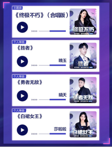 事实上,早在在此前的活动中,《和平精英》就与QQ音乐合作打造“「S制造」·新声空降计划”,并宣布火箭少女成员傅菁将与晚玉、晴天、莎啦啦三位来自虎牙平台的主播一起,组建“新声空降天团”推出《终极不朽》、《勇者无敌》、《胜者》等诸多单曲和专辑,取得了相当不错的关注度和播放量。