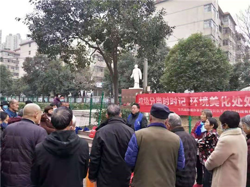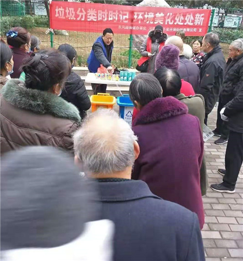 11月25日,东风路办事处宋砦社区的志愿者与河南衣衣不舍环保科技有限公司垃圾分类宣传员们一起,来到辖区广场展开垃圾分类户外宣传。