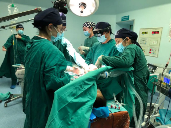通过 MR 混合现实技术,可以达到将虚拟内容直接与真实操作对象叠合。借助计算机将 CT 显示的患者肝脏内部胆管、血管进行重建,使肝内一些本来不能被手术者肉眼直视的胆管、血管图像,通过手术医师佩带的影创科技 MR 混合现实眼镜清晰地呈现于术野,给医生装上了“透视眼”,创造了真实操作感受,大幅降低了手术操作难度,减少了并发症的发生率。