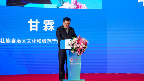 图为广西壮族自治区文化和旅游厅党组书记、厅长甘霖致辞
