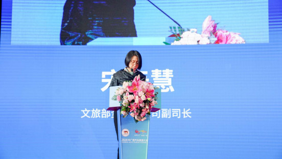 图为文化和旅游部产业发展司副司长宋奇慧讲话
