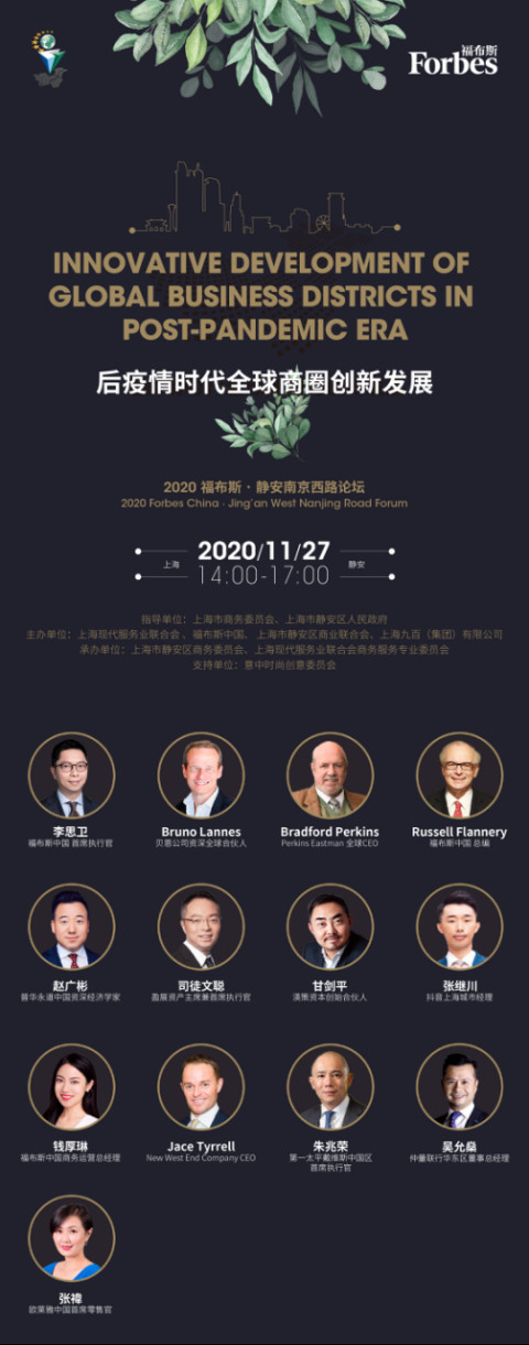 由上海市商务委员会和上海市静安区人民政府指导,上海现代服务业联合会、福布斯中国、上海市静安区商业联合会和上海九百(集团)有限公司共同主办的“2020福布斯·静安南京西路论坛”于11月27日在沪召开。