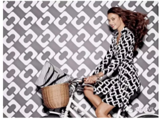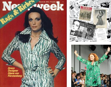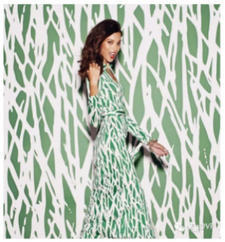 1973年,Diane 为《新闻周刊》(Newsweek)杂志拍摄封面时正是身着的绿色树枝纹印花裹身裙。绿色树枝纹路塑造的生机昂扬代表了DVF的品牌态度,就是让女人时刻保持自信和优雅。