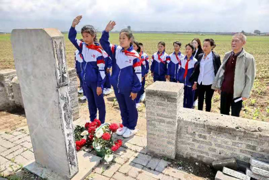 今年5月28日,雨过天晴,风和日丽。辽宁省辽阳市辽阳县小北河镇通气湾村小学部分师生在校长刘丽带领下,手持自己采摘的鲜花,沉痛地来到村西北修缮一新的三位无名小八路坟前,开展祭扫英烈活动。在刘丽主持下,思政课老师将其收集到的当年三位无名小八路为解放家乡英勇牺牲的故事,生动地讲给了师生听。师生们将手中的鲜花,一一献给了烈士,并将两个编好的花篮,敬献到烈士墓前。他们庄严宣誓:一定要继承先烈遗志,传承好红色基因,努力学好本领,争做时代新人,为建设社会主义现代化国家不断奋进。