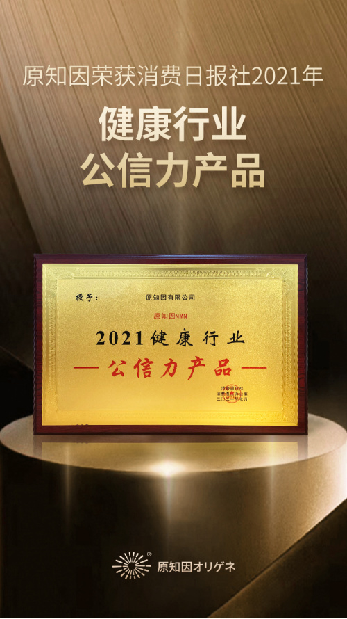 近日,由中国保健协会主办,中国保健协会食物营养与安全专业委员会协办的“健康中国•2021营养健康食品大会”在杭州成功举办。凭借在大健康产业的品牌公信力以及消费者良好口碑,原知因荣获消费日报社“2021健康行业公信力产品”奖。
