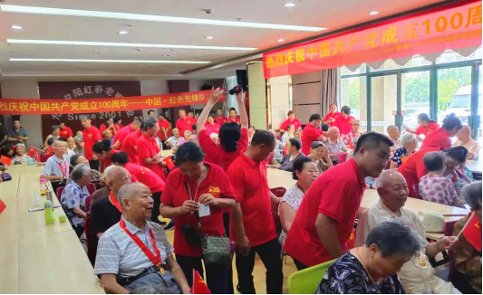 7月15日下午,中国红色先锋队前往合肥市九久夕阳红老年护理中心慰问老人,为老人买了水果、食品、日用品等。