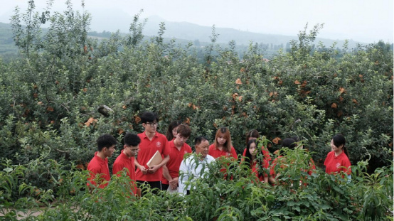 东里镇党支部委员张合中,带领视觉传达设计组成员进行农产品专题调研。据悉,沂源县主要种植苹果、桃子、葡萄等农作物,其中苹果“沂源红”与桃子“金黄金桃”最为有名。沂源县所处地理位置为适宜种植苹果的最佳纬度,为防止农药污染,果实外均会包裹纸袋,以确保果实品质。