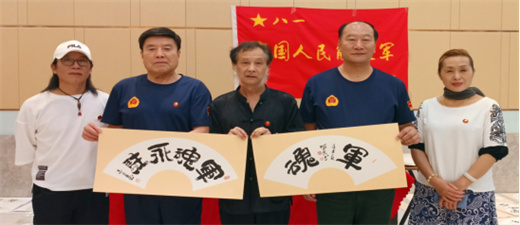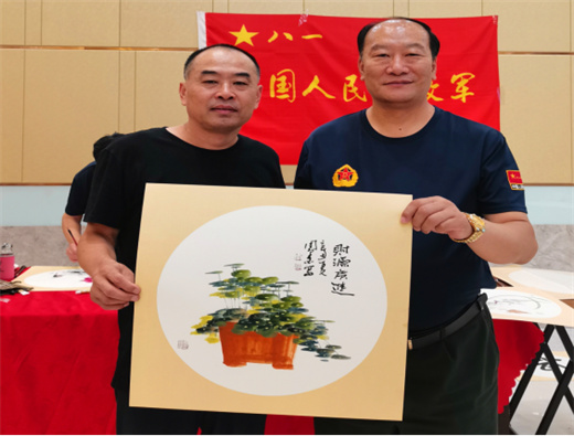 在笔会现场,退伍老兵观看了世界华人书画家们的现场创作,与书画家们共叙鱼水深情,书画老师挥毫泼墨、即兴创作,以字传情,以画达意,创作出一幅幅书画精品,用笔墨书写我们的新时代,以翰墨丹青方式共同庆祝 “八一”建军节。