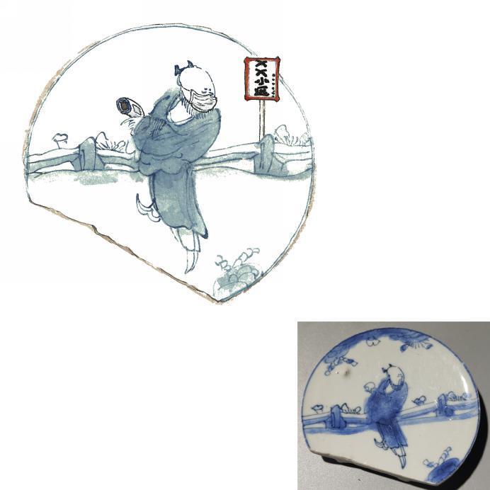 这组古瓷片防疫“漫画”12月27日新鲜出炉,目前共创作了5幅,孟铃烁、赵钟、古志豪用“仙人乘槎”“东方朔偷桃”分别对应戴口罩、测体温等。孟铃烁被评为景德镇市“3+1+X”产业人才”,同时其工作室被教育部公布首批中华优秀传统(陶瓷文化)传承基地并授予“孟铃烁陶瓷文化传承创新工作室”。