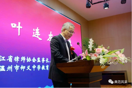 浙江省律师协会监事长、温州市仰义中学教育发展促进会执行会长叶连友先生致辞