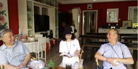 (左1)吟诵者黄德源先生、蔡青青总编、编著者杨以付先生访谈现场