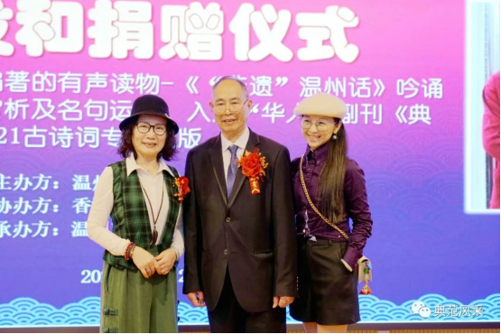 蔡青青总编发言:“中国,是诗国,诗的泱泱大国。中华古诗词“博大精深”,维系着数千年的传统,凝聚着56个民族的心声。它是世界百花园中的奇葩,它是人类文明史上的瑰宝。它们之中的名句佳作,更是璀璨绚烂,珍美绝伦。为了让青少年感受中华文化魅力,传承文化基因,凭杨以付先生从事教育工作40余年的教学经验,经过多年的酝酿,他借鉴了中国古诗词的文化精髓。多年来对古诗词的研读与深度理解,特选用了八十首古诗词,着手编著《八十首古诗词温州话吟诵、赏析及名句运用》其中有译文、诗和诗人的故事。并邀请了《“非遗”温州话》吟诵传承人黄德源先生与之完美配合。本“华人”副刊《典范风采》杂志结合杨以付先生的创新理念,选用了“非遗文化”古琴音乐由黄德源先生亲自吟诵这八十首古诗词,分别设计各自二维码。为了培养青少年学生对学习古诗词更浓厚兴趣,本刊将部分诗词配上相应的图片,构成了即可听又可观赏的中国古诗词文化盛宴。以《典范风采2021古诗词专刊》出版,将他们为传承中国古诗词文化的满腔热忱与成果,展示给广大读者与青少年学生们,与大家共同学习并共勉”!