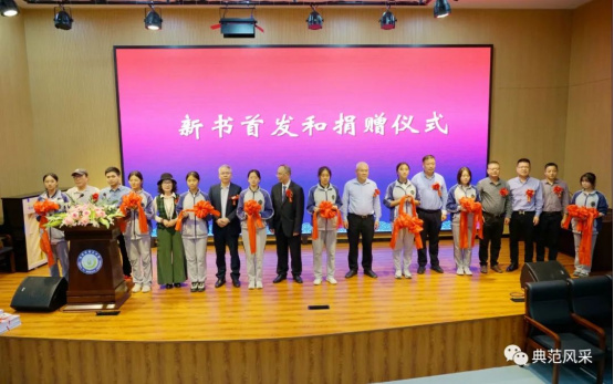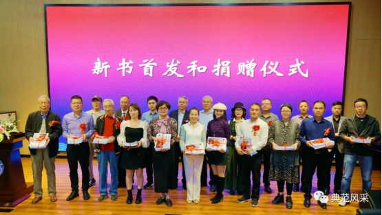 温州广播电视传媒集团著名导演张民等领导嘉宾,为温州诗词协会王鸿彬先生及仰义中、小学代表赠书现场留念