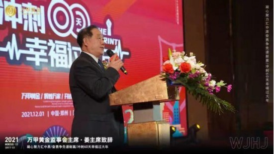 万甲黄金监事会姜主席代表公司上台致辞:基于全国庞大的市场,万甲黄金产业集团带领大家一定会走出一条有特色发展的黄金新赛道!在飞速发展的当下,万甲黄金毫无动摇的坚定信念和殷殷希望溢于言表!