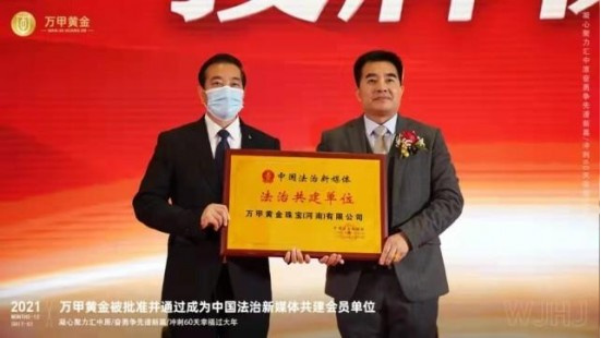 祝贺万甲黄金珠宝(河南)有限公司从即日起被批准并通过成为中国法治新媒体共建会员单位