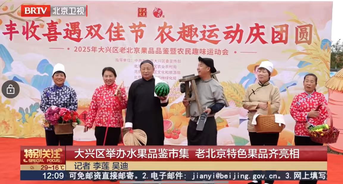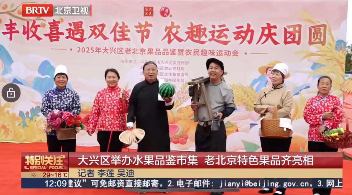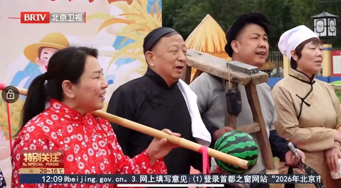 当 2025 年金秋的丰收气息如梦幻薄纱,轻柔地笼罩大兴区每一寸土地,甜美的果香与老北京民俗的醇厚韵味浪漫交织,一场跨越时空的文化盛宴在大兴激情上演。正明圣达民俗吆喝叫卖表演艺术团创始人郑光荣,携团队于 9 月 19 号荣耀登上 BRTV 北京卫视《特别关注》镜头,在“丰收喜遇双佳节 农趣运动庆团圆”——大兴区老北京果品鉴暨农民趣味运动会现场,以原汁原味的民俗表演,为这场丰收盛会注入浓郁京味文化基因,让古老民俗在新时代绽放别样光彩。