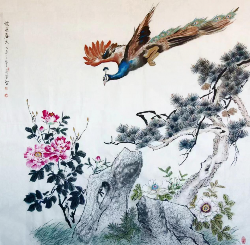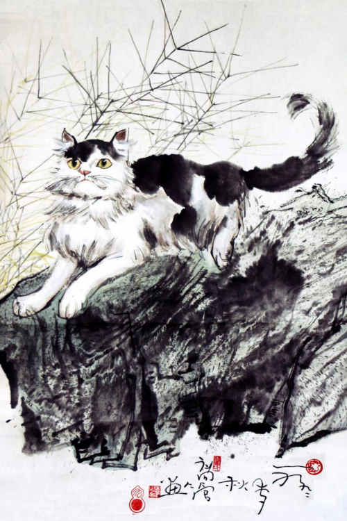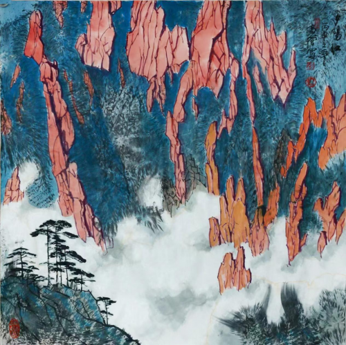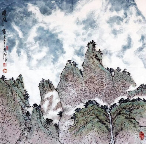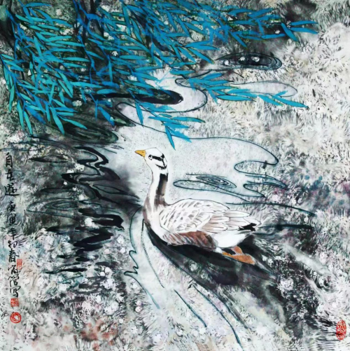 同时经过二十多年的摸索、试验、独创出一种“流动渲染”的渲染方法,这种方法改变了传统渲染方法的工艺流程。传统渲染方法——是先调和好水与墨,然后作画。而流动渲染——是让水与墨在运动中调和。
