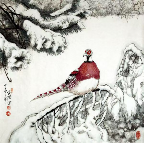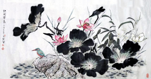 流动水墨画特点:动静结合,突出主要的;花鸟系列;雪景系列;黄山系列。