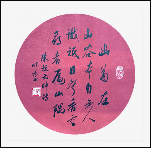 其自幼酷爱书法,几十年如一日,工作之余以及退休后,浸淫书艺,历久未疲,涉猎广博,博采众长,无惧无畏,探寻书道。以行书、榜书为长,秉承古今名迹,博涉广览,取精择优,熔为已用。追崇二王书法。书痴为友,乐为书狂。开拓书法视野,不断提高个人艺术修养,弘扬传统文化,有所作所为。在多位专家和老师悉心指导下苦习多年,不耕不辍,总算略有成绩。基本做到书风端庄,形合大众。行书优雅,自然流畅,榜书厚重,结字大气。力求传统与现代书法良好结合。