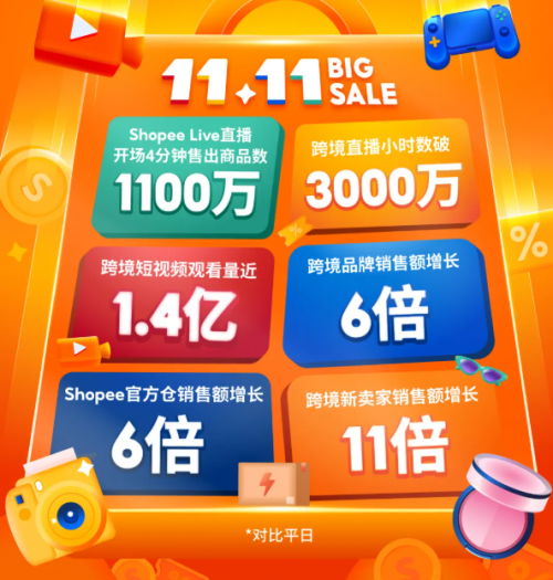 过往的2025年11月11日大促期间,作为跨境电商的领航平台Shopee以现象级表现收官,成为跨境电商领域的年度焦点。平台直播开场仅4分钟便售出1100万件商品,跨境品牌销售额同比暴涨6倍,新卖家更是实现11倍的跨越式增长,官方仓销售额同步攀升6倍。这份亮眼成绩单不仅印证了Shopee在东南亚及拉美市场的领航地位,更彰显了其赋能跨境商家的强劲实力,成为当之无愧的跨境电商首选平台。