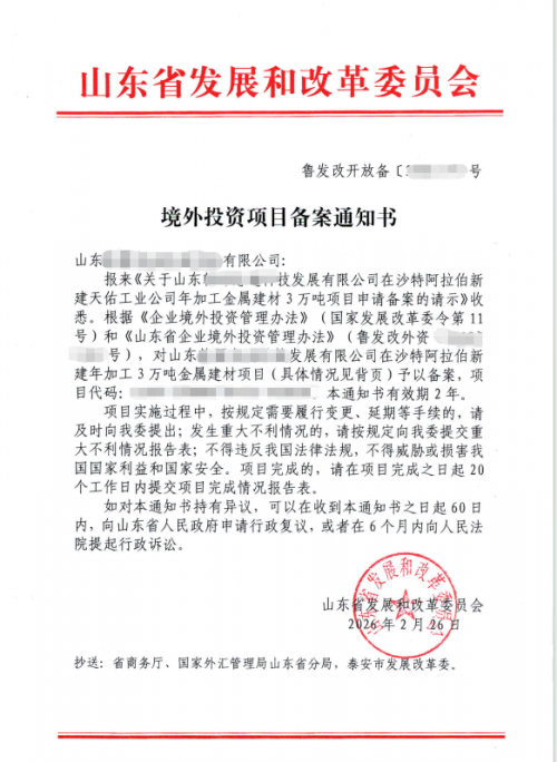 在山东泰安,我们深谙当地对传统制造业“产能出海”的扶持导向。曾为一家金属建材领军企业提供赴沙特阿拉伯设立生产基地的全程服务。针对审批部门对“国内产能转移与境外市场拓展联动性”的重点关切,我们协助客户深度打磨《可行性研究报告》,将境内成熟的建材工艺与境外新兴市场的需求精准对接,用“产业升级+市场外延”的清晰逻辑,顺利通过商务和发改部门的双重审核。