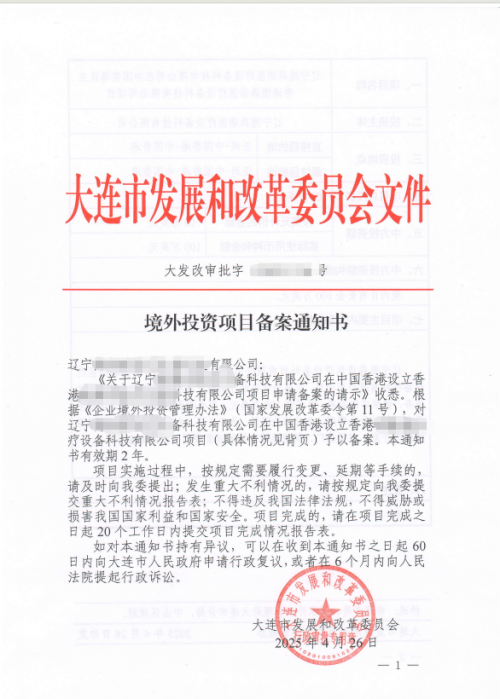 在大连辽宁,面对医疗设备这类高附加值、强监管行业的出海,我们深知审批部门对技术合规性与资金真实性的“双严谨”要求。近期服务的一家大连医疗企业赴德设立售后及研发分支机构,我们提前介入,协助其完整梳理境内医疗器械注册证、境外业务合同及研发人员配置等佐证材料,精准回应了审批部门对项目真实性的穿透式问询,确保企业如期拿到备案证书,稳步迈入香港市场。