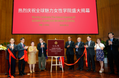 2019年9月14日,全球女性智慧共享平台全球魅力女性学院在中美建交40周年庆典上正式揭幕。 (全球魅力女性学院正式揭幕,从中到左:美国前总统卡特儿子奇普卡特、小小世界集团主席、全球魅力女性学院创始院长万玉华、西亚斯集团创始人陈肖纯、前万达集团北美总裁...