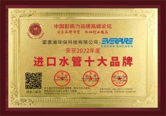 恭贺“爱惠浦”荣获2022进口水管-进口管道-家装水管十大品牌