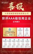 喜讯!江苏清碳管理咨询有限公司获得AAA级企业信用等级认证