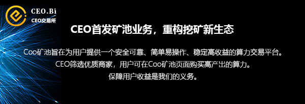 CEO交易所上线Coo至今,自首创交易挖矿、动态挖矿模式之后,CEO官方已震撼推出Coo矿池业务。