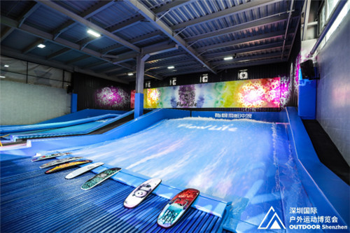 再往里走将是“水上运动专区”,这除了将陈列各式各样的水上服饰、桨板、冲浪板等装备,主办方还将借助Flowlife设备,把冲浪机搬进展馆,打造迷你冲浪体验区,让观众在现场有机会体验一下冲浪乐趣;
