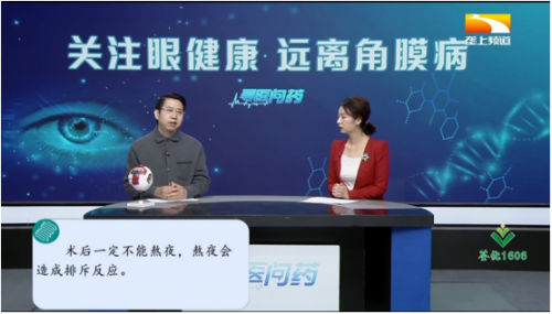 主持人毛迪:刘教授刚刚讲到非常重要的,就是角膜移植术后,需要听医生、护士的交待。您可否具体讲讲这个角膜移植术后注意事项?