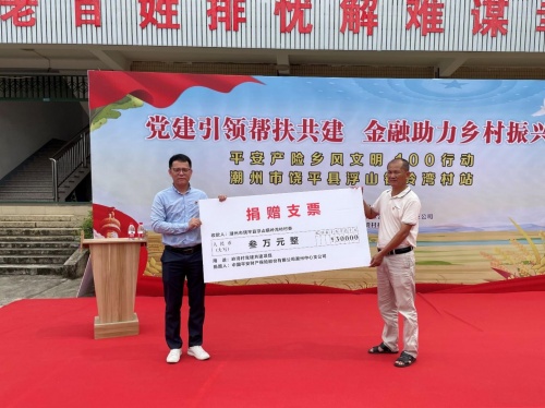 6月21日,在潮州市金融工作局指导下,广东平安产险潮州中支支部委员会联合潮州市岭湾村村委会在该村开展以“党建引领帮扶共建,金融助力乡村振兴”为主题的平安产险乡风文明100行动启动仪式,这标志着平安产险“乡风文明100”在广东省再落一地。当日,潮州市金融工作局局长吴振升、副局长黄志猛、浮山镇委书记张素华等出席活动并与平安产险代表共同为岭湾村支部委员会与平安产险潮州中支支部委员会“党建共建点”揭牌。