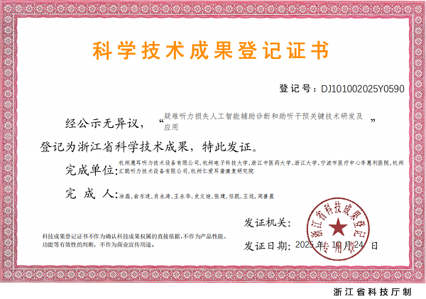 本次研究依托杭州仁爱耳聋康复研究院,联合惠耳听力在全国近 3000 家服务中心推广应用。惠耳听力是国家高新技术企业、国家级专精特新小巨人企业,通过六项ISO认证,拥有国内一流的听力学检测设备与科研团队,多项研究成果填补了国内行业空白,始终以患者需求为核心,推动我国听力康复事业的规范化、标准化、普惠化发展。史文迪团队的成果,不仅完善了我国人工听觉干预技术体系,更真正以患者需求为核心,用技术打破无声枷锁,帮助听损人群自信回归社会,为健康中国建设注入民生力量。